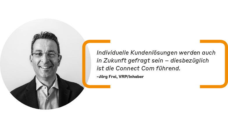 Dank des grossen Lagers in der Schweiz sowie der hauseigenen Produktion und Konfektion können wir innert kürzester Frist liefern. Individuelle Kundenlösungen werden auch in Zukunft gefragt sein – diesbezüglich ist die Connect Com führend. Was uns zudem auszeichnet, ist der Service und Support, unsere Kunden betonen dies immer wieder. Die Connect Com wird auch in Zukunft eine wichtige Rolle spielen im Markt. Nicht nur in der Schweiz, auch in Deutschland.