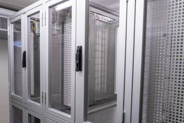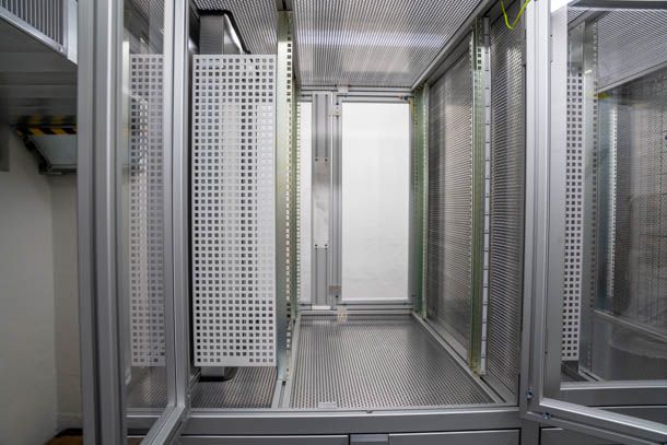 Das Team mit Franz Bucher (Projektleiter) und Nicco Kurmann (Verkauf) von Connect Com ergänzte sich gut. Offerte, Konzept, Zeichnungen und die Koordination für den kundenspezifischen Aufbau der Flexracks folgten rasch nach dem ersten Gespräch mit Michel Hernandez. Franz Bucher zeichnete im 3D-Programm eine Massanfertigung der geplanten Colocation Schränke mit Flügeltüren. «So kann der knappe Platz optimal genutzt werden», teilte er seine Überlegung.
