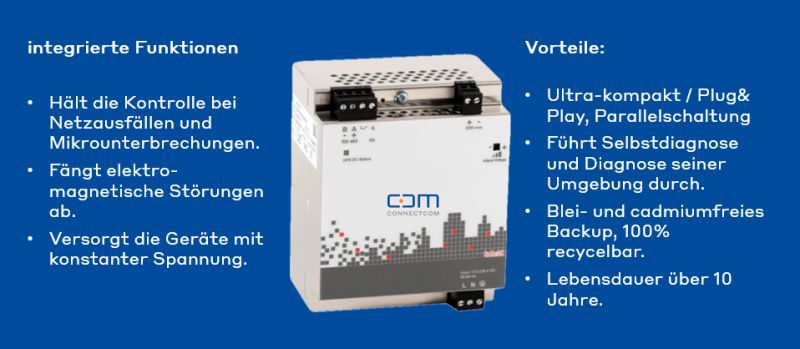 Eine redundante Anbindungen von OT-Systemen mittels Glasfaser ist wichtig, doch auch die Stromversorgung sollte redundant vorhanden sein. Aufgrund dessen haben wir für unsere Kunden wartungsfreie Mikro-Gleichstrom-USV Anlagen, welche auf DIN-Schiene montiert werden können und eine Lebensdauer über 10 Jahre haben, ins Portfolio aufgenommen.