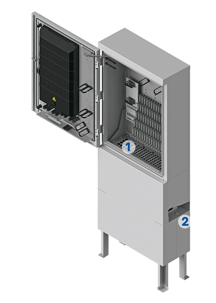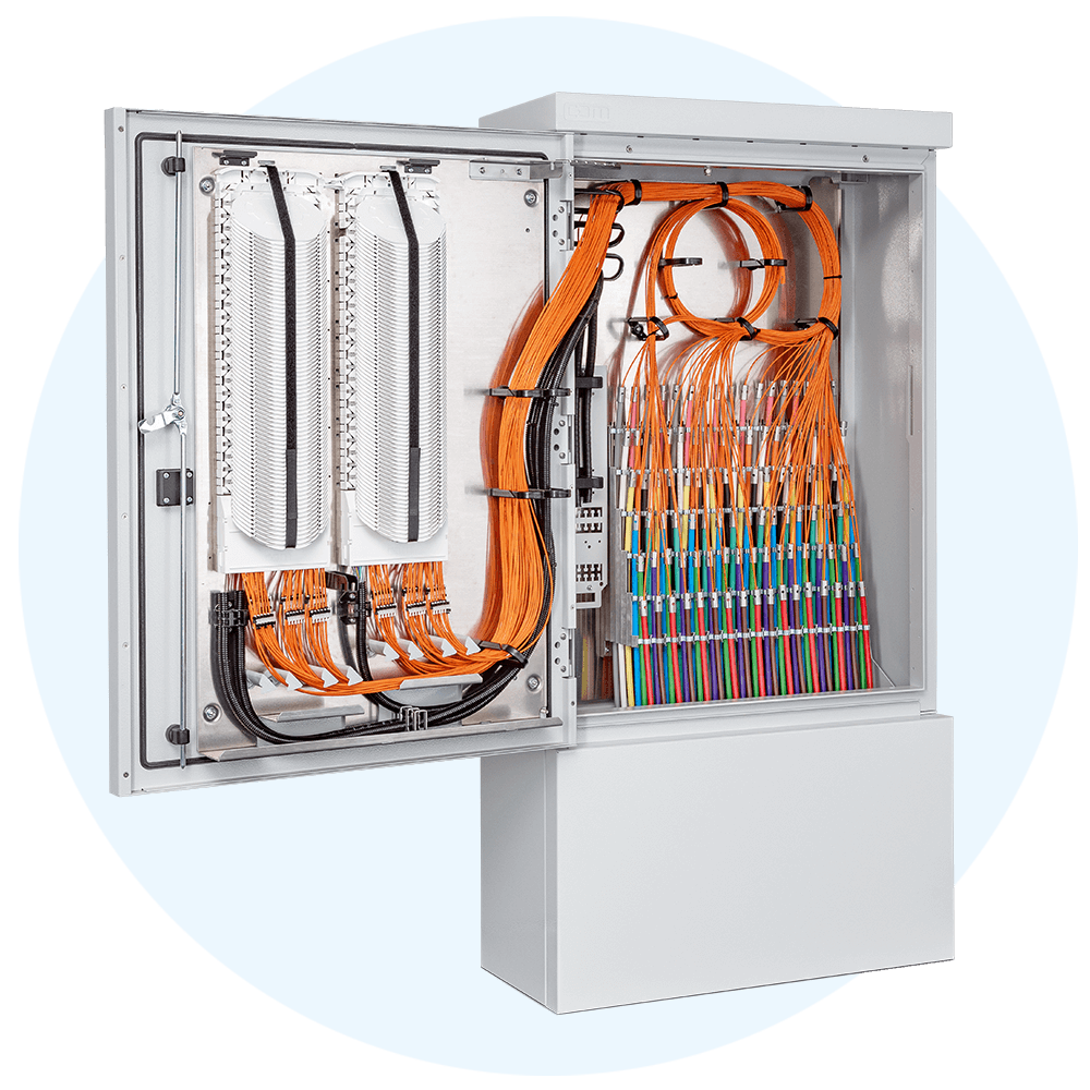 Netzverteiler sind passive Verteilergehäuse für den Glasfaser-Netzausbau und werden zur Verzweigung von Glasfaserkabeln auf Endteilnehmeranschlüsse eingesetzt. Sie kommen so-wohl in P2P- als auch in PON-Architekturen zum Einsatz und ermöglichen es, Glasfaserkabel in unterschiedlicher Anzahl an Endabnehmer in Wohn- und Industriegebieten zu verzweigen. Die CCM Netzverteiler NVt zeichnen sich durch technische und bauliche Raffinessen aus, die es Kommunen und Netzbetreibern ermöglichen, flexibel auf die Anforderungen wachsender Glasfasernetze zu reagieren.