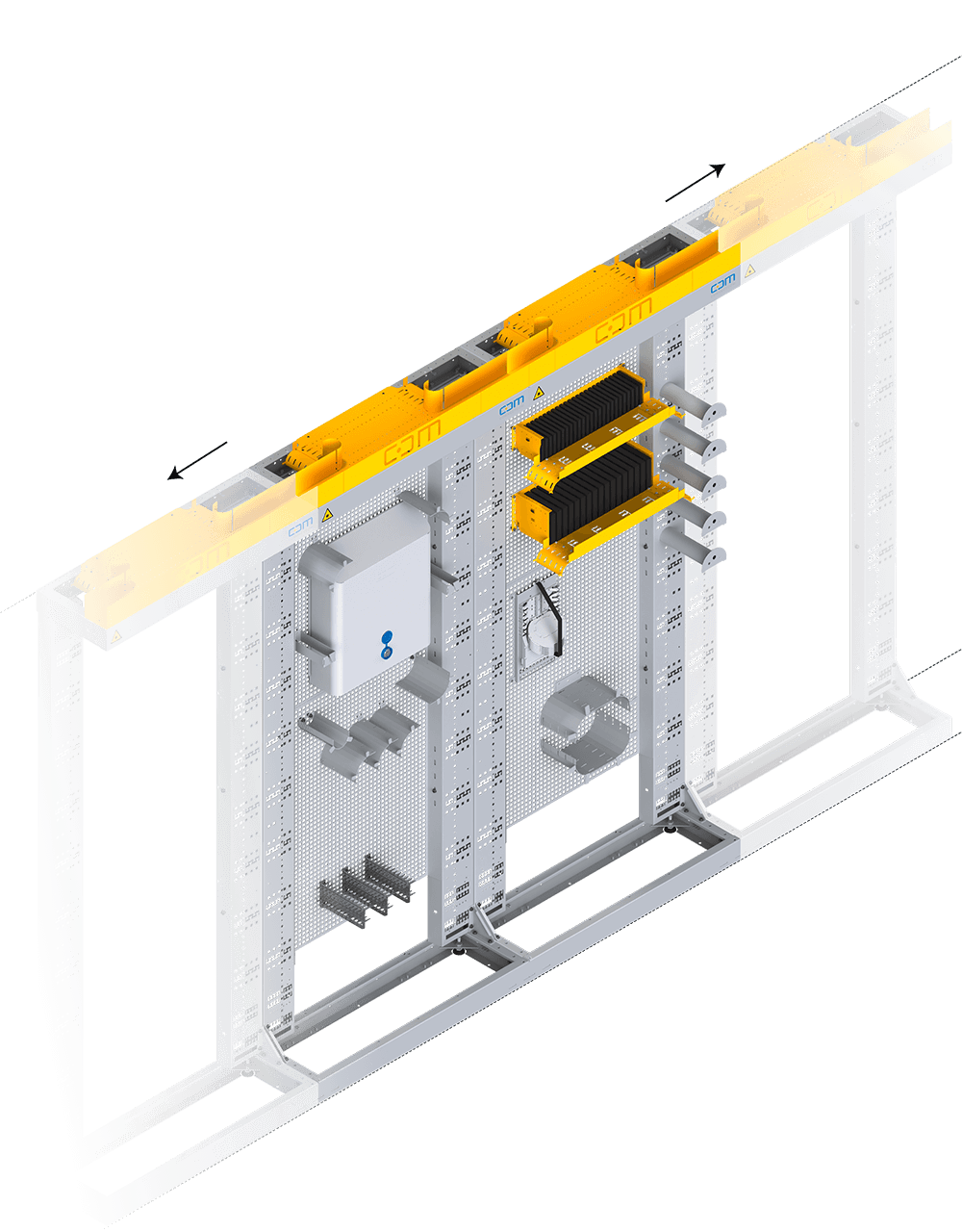 Mit Hilfe der CMS Komponenten lassen sich Patchkabel in einheitlichen Längen und strukturiert zur Aktivtechnik bzw. zu den Splitterbaugruppen zuführen, ohne die Biegeradien der Glasfasern zu unterschreiten.