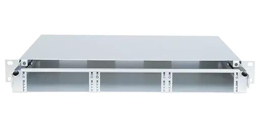 Der 1HE Modulträger ist geeignet zur Aufnahme von bis zu 3 Moduleinheiten. Bestückt wird der ausziehbare Träger mit 7TE oder 8TE Spleiss- oder SpiderLINE Modulen, sowie mit MTP Easy Connect oder MultiWAY Modulboxen.