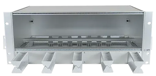 Die 3HE und 4HE Baugruppenträger PRO eignen sich zur Aufnahme von bis zu 12 Moduleinheiten. Bestückt werden die Träger mit 7TE oder 8TE Spleiss- oder SpiderLINE Modulen. Kabel- und Rohreinführungen sind hinten und seitlich möglich. Das nach hinten ausziehbare Bündeladerüberlängenfach befindet sich im unteren Bereich.