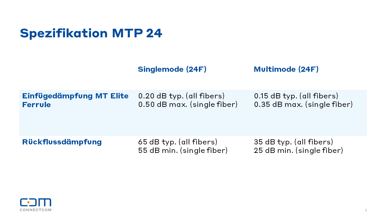 Der MTP Mehrfaser-Stecker ist ein weiterentwickelter MPO Stecker des US Konzern US Conec. Der MTP Stecker basiert auf MT Ferrulen und wird bis max. 72 Fasern eingesetzt. In der lokalen Fertigung in Rothenburg sind wir in der Lage, MTP Stecker bis 24 Fasern zu konfektionieren.